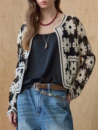 플라워 크로셰 라운드넥 니트 가디건