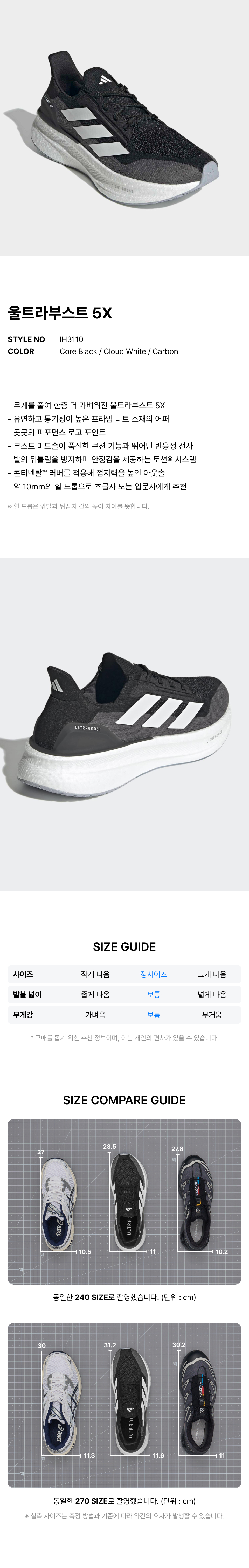 울트라부스트 5X - 블랙:화이트:카본 / IH3110