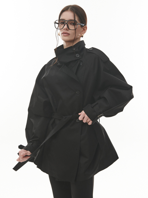 Double Trench Half Coat [BLACK]
