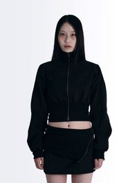 하이넥 리브드 크롭 점퍼 [블랙]