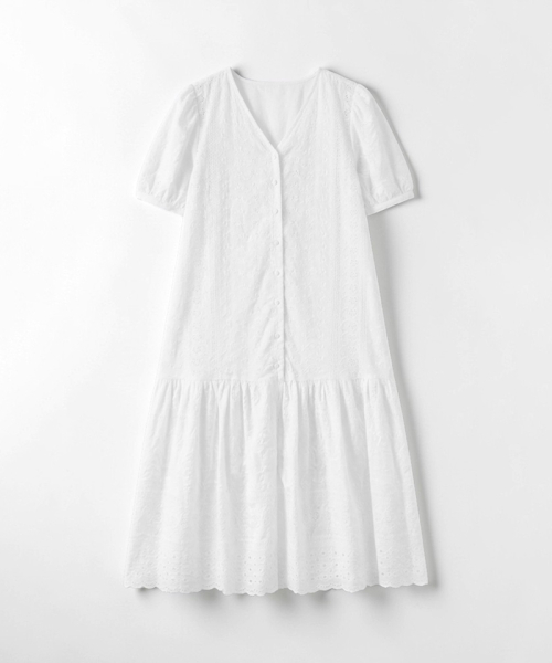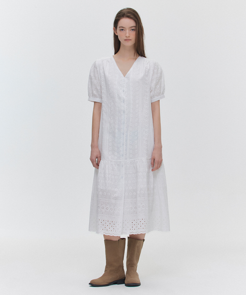 브이넥 레이스 버튼 반팔 원피스(MAGBOP03MWH)