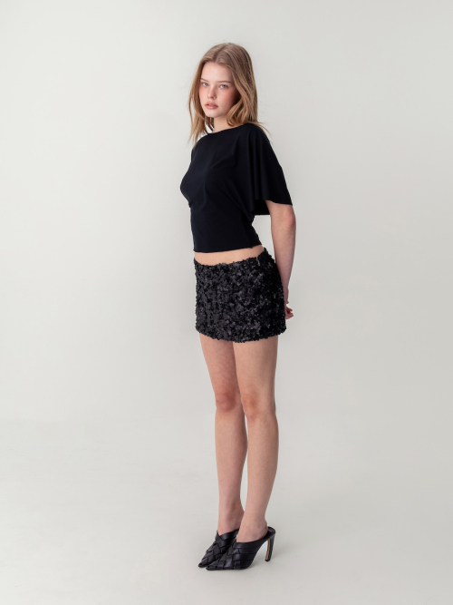부드럽고 찰랑거리는 소재를 사용해 전체적으로 가볍게 흐르는 실루엣을 연출한 아이템입니다.