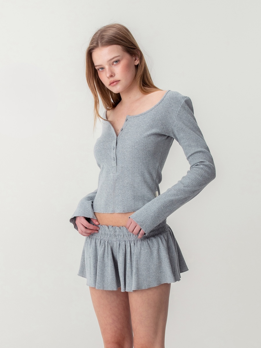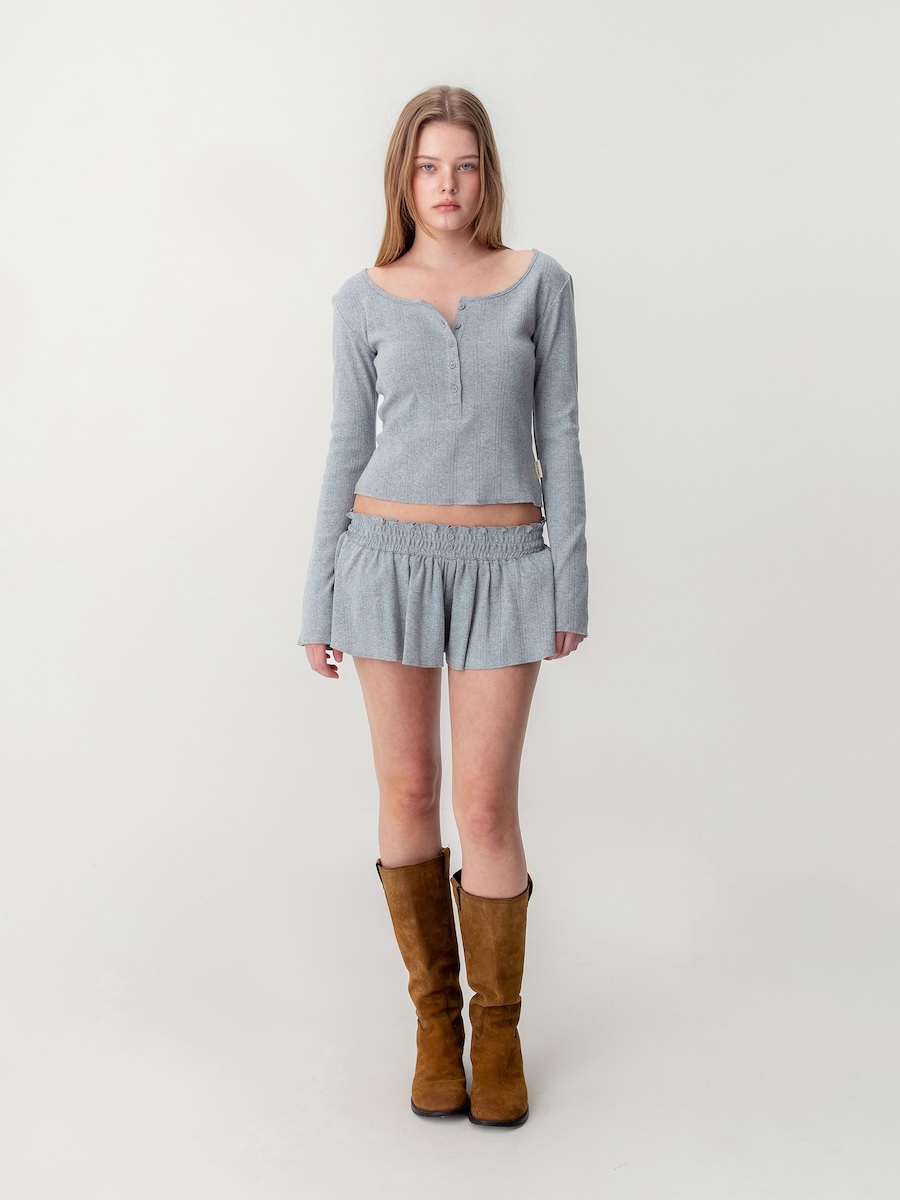 속바지를 내장해 훌이 넓은 실루엣에도 안정감 있게 착용할 수 있으며, 짧은 스커트처럼 보이면서도 반바지의 편안함을 동시에 갖춘 아이템입니다.