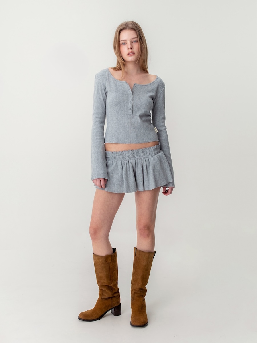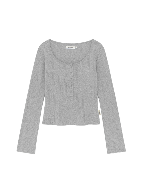 HONEY EYELET BUTTON LONG SLEEVE (GRAY)