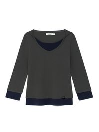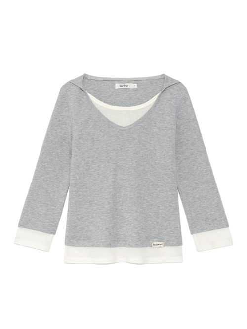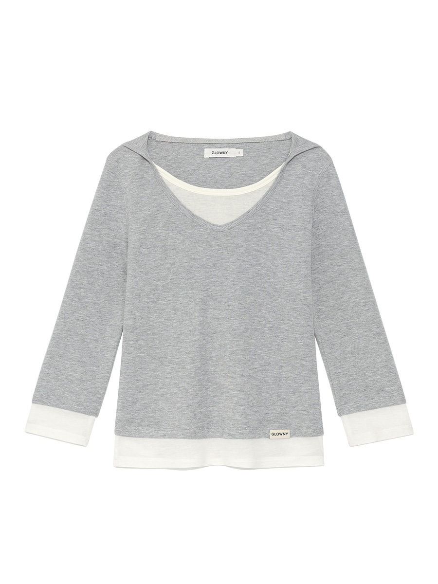 마치 이너를 레이어드한 듯한 디자인의 7부 후드 티셔츠로, 하나만 착용해도 스타일링이 완성되는 아이템입니다.