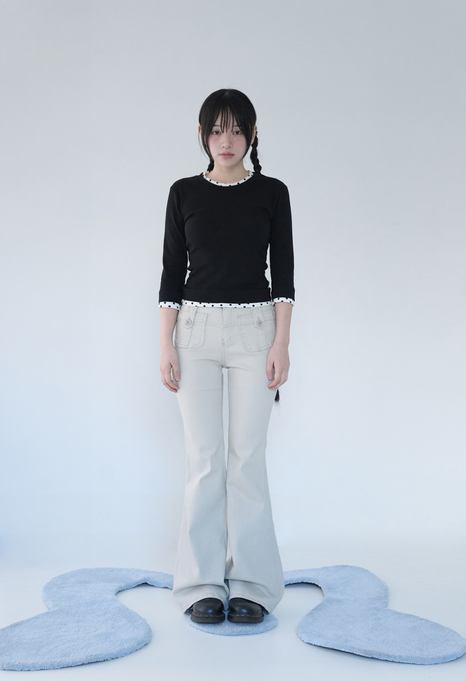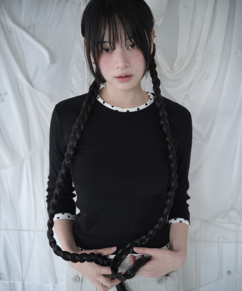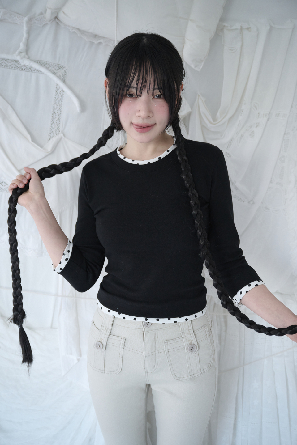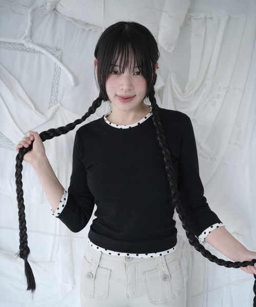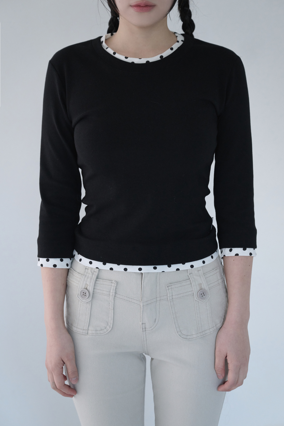 - 네크라인·소매단·밑단 도트 배색 포인트