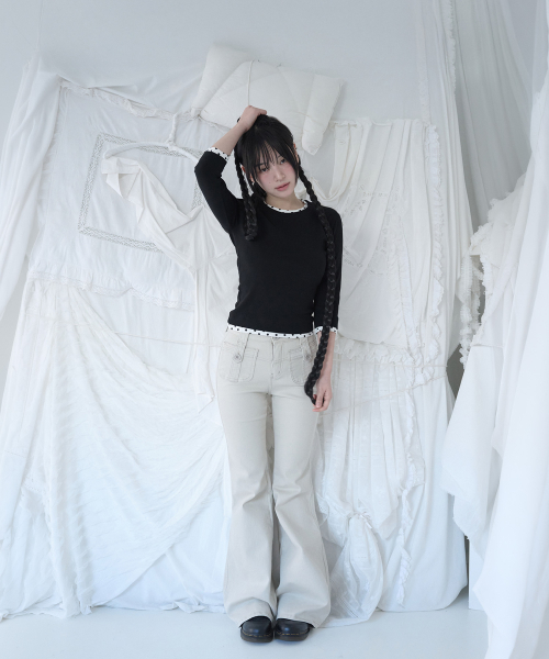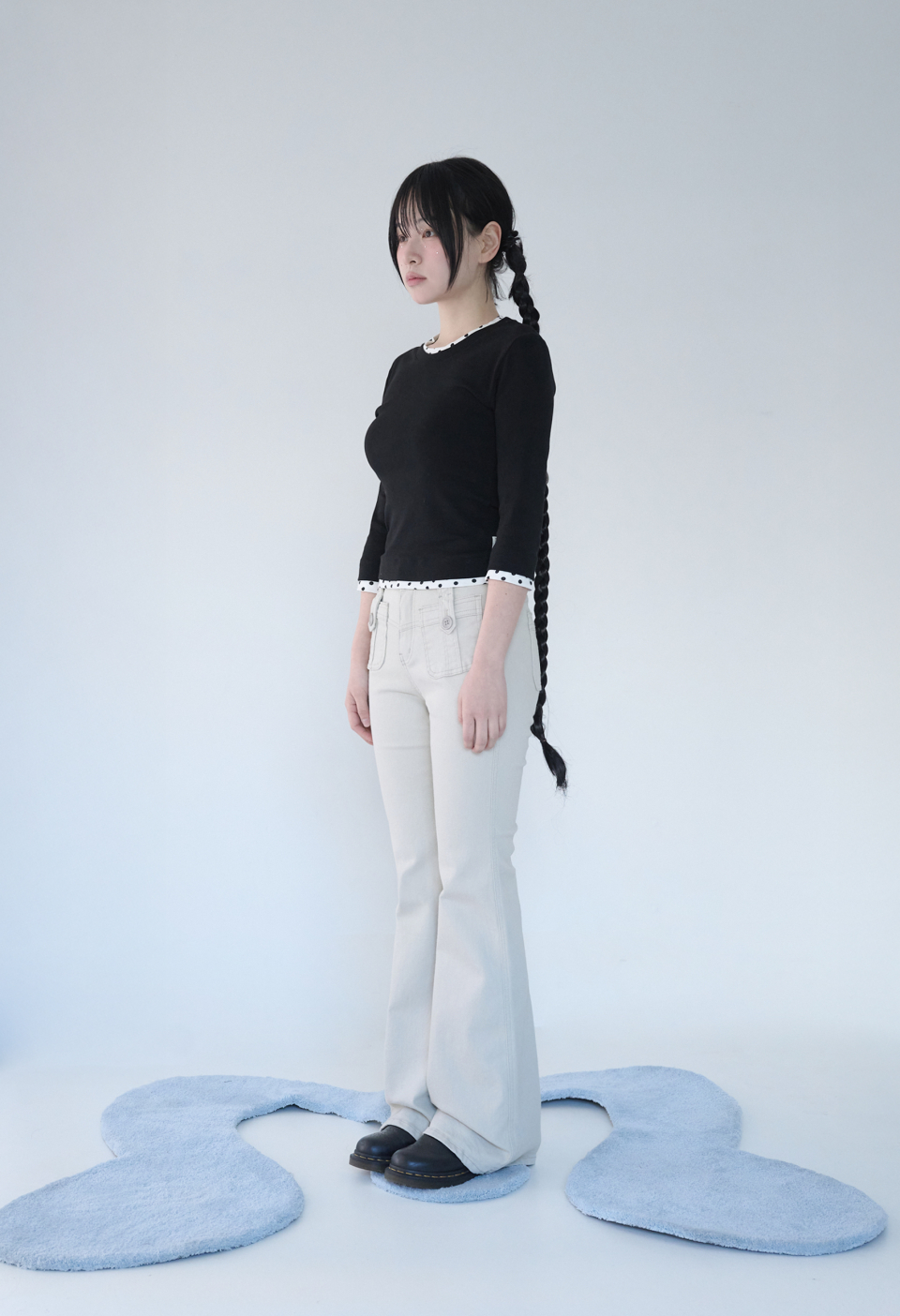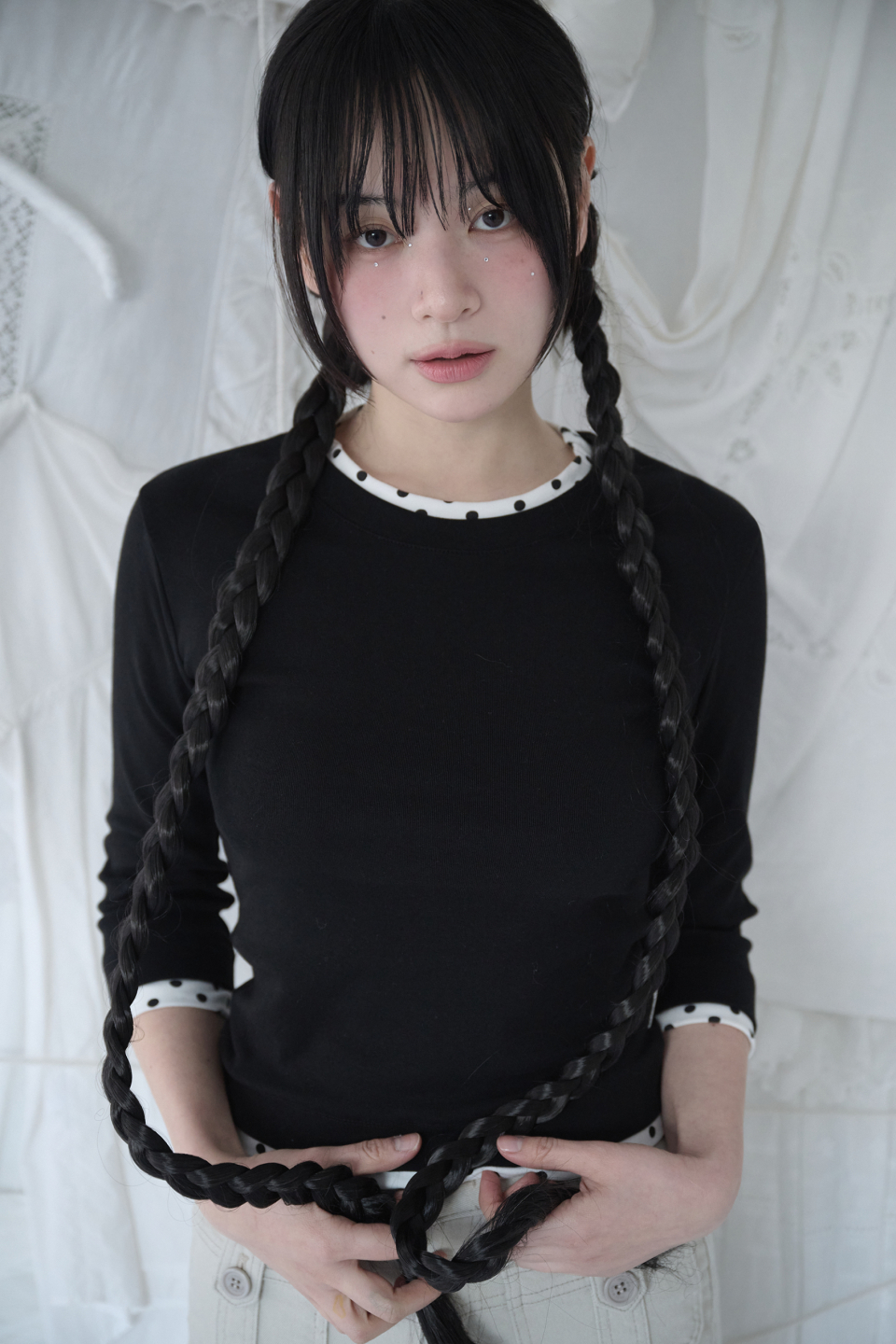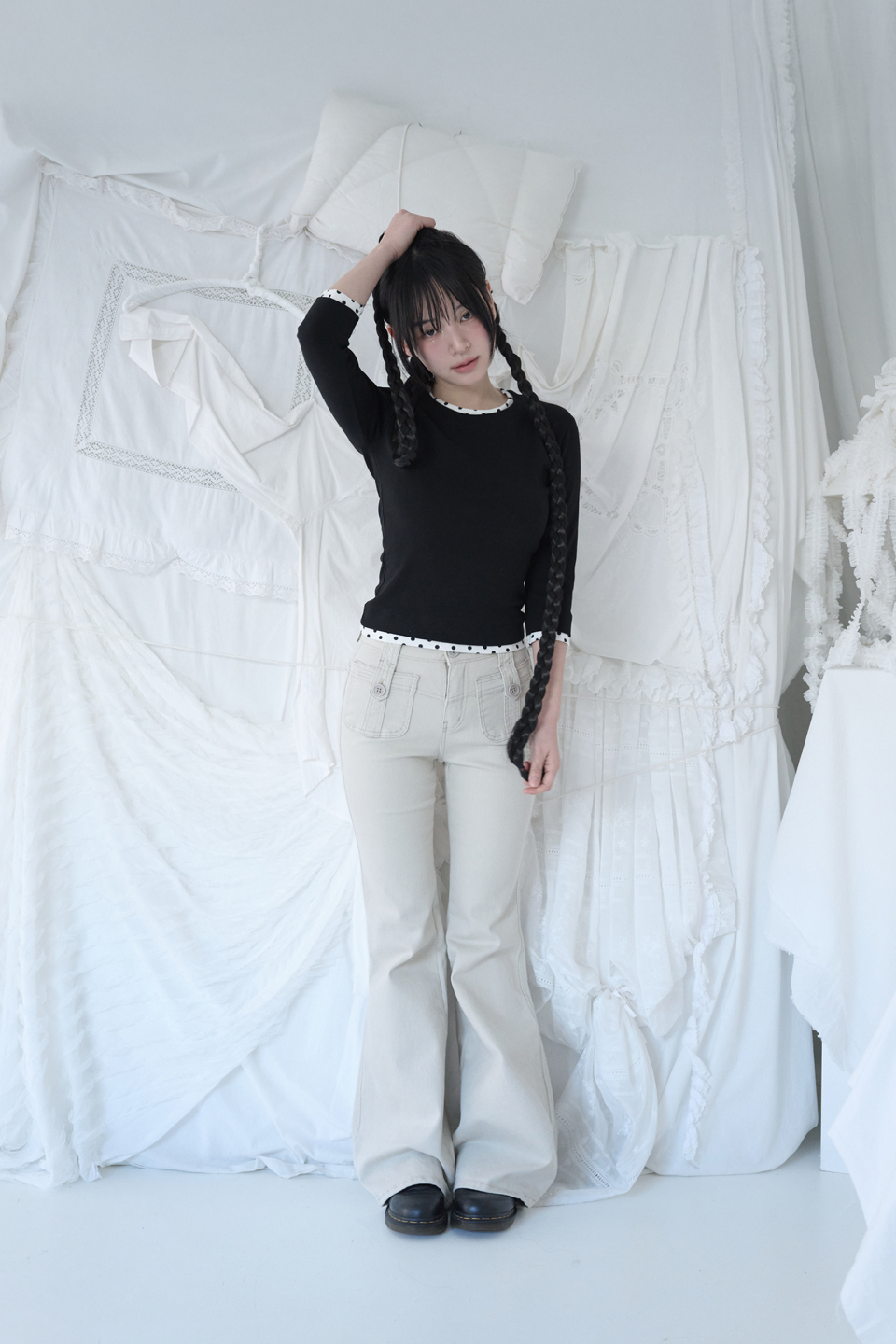 - 네크라인·소매단·밑단 도트 배색 포인트