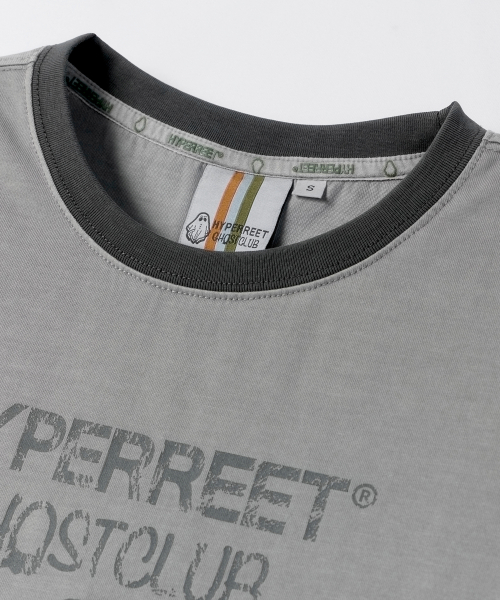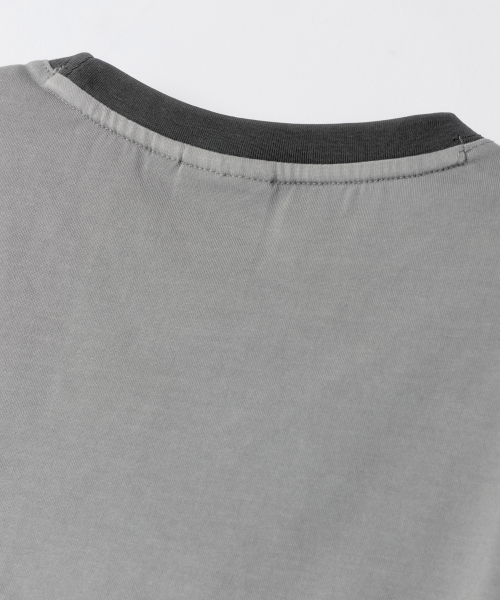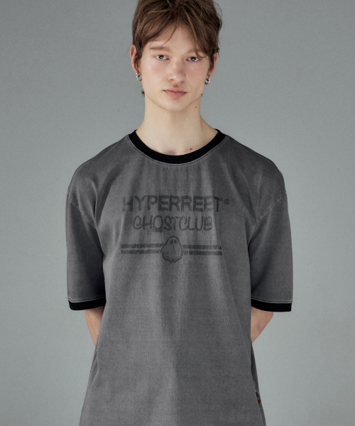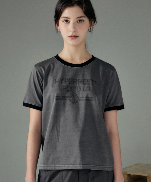 남녀공용 피그먼트 라운드 링거 반팔 티셔츠 [차콜]_HG2TS118