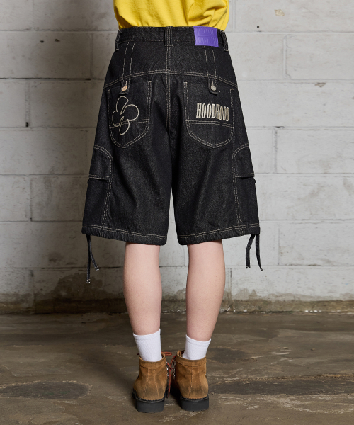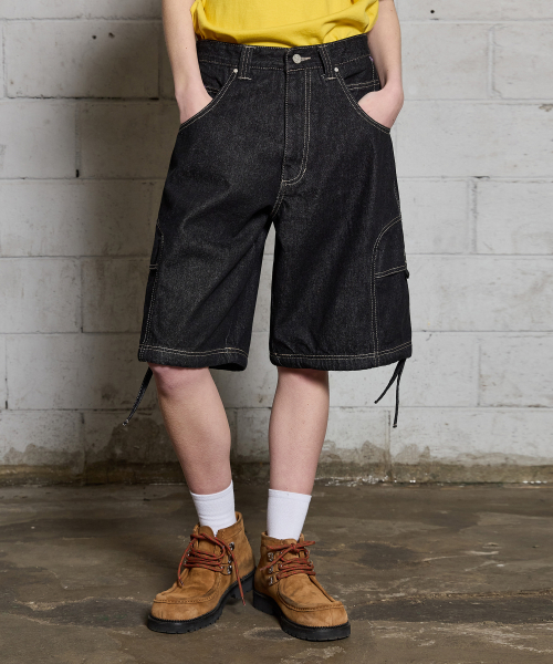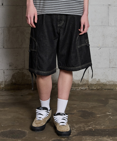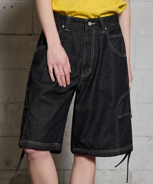 빅 포켓 버뮤다 데님 팬츠 블랙