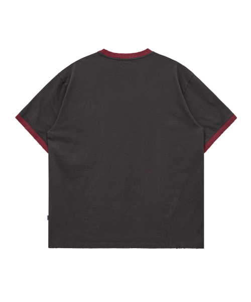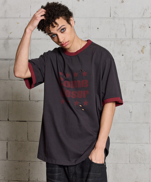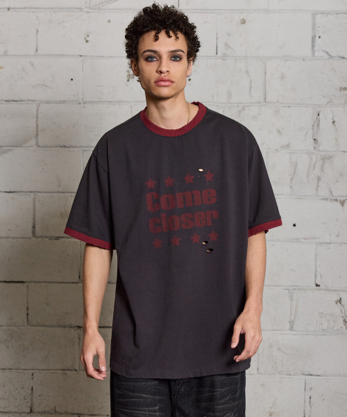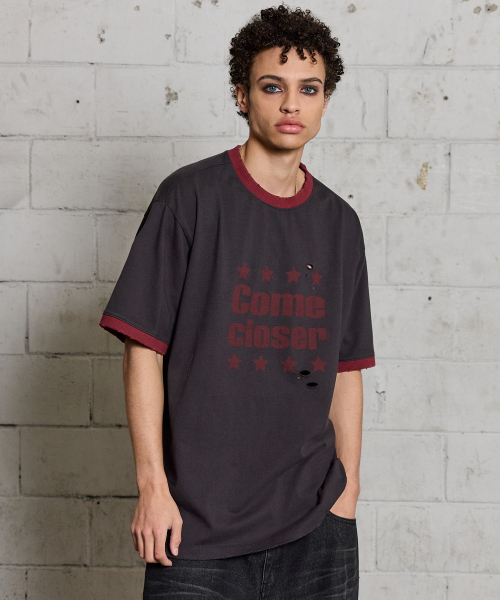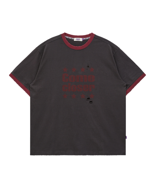 COME CLOSER 데미지 링거 반팔티셔츠 차콜