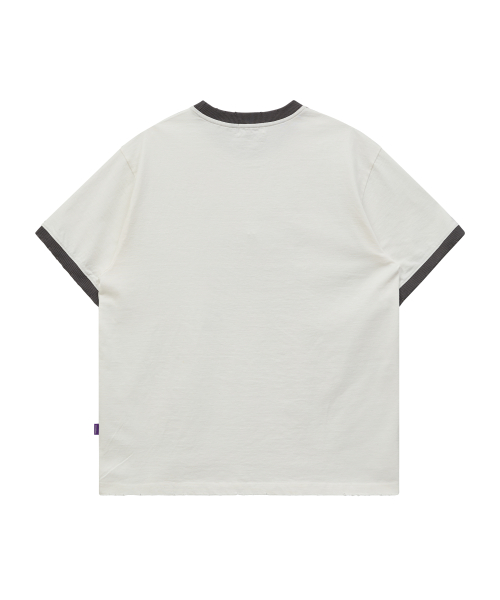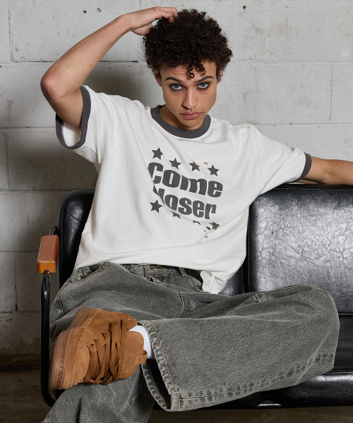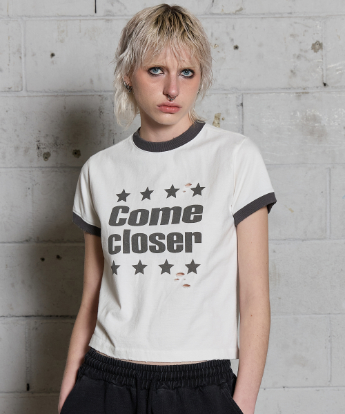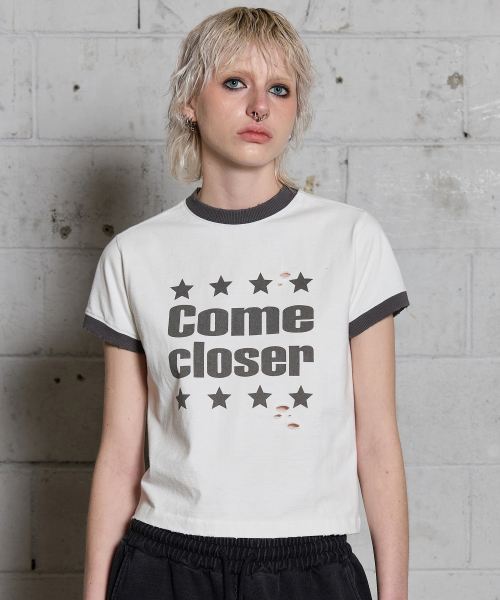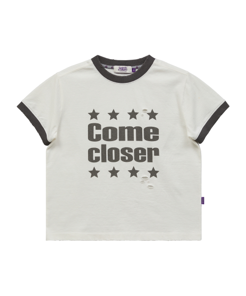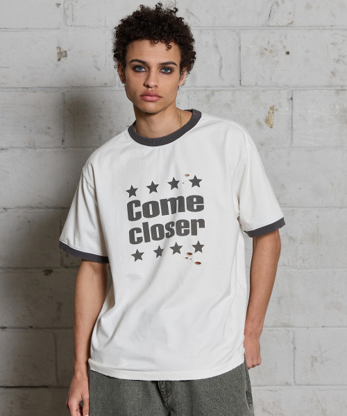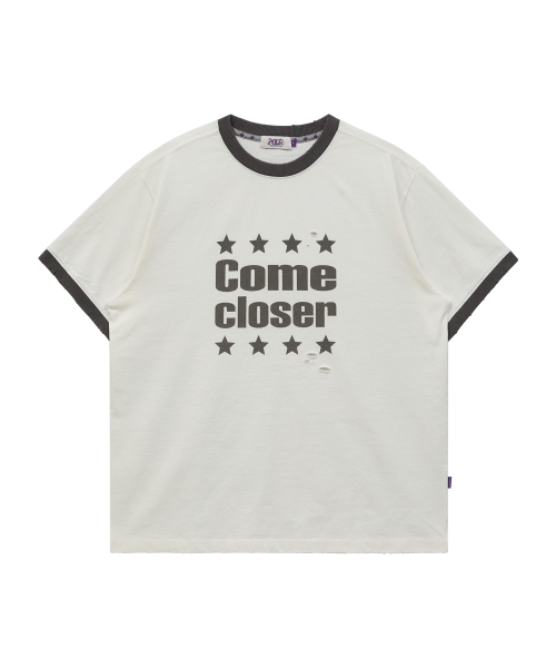 COME CLOSER 데미지 링거 반팔티셔츠 아이보리