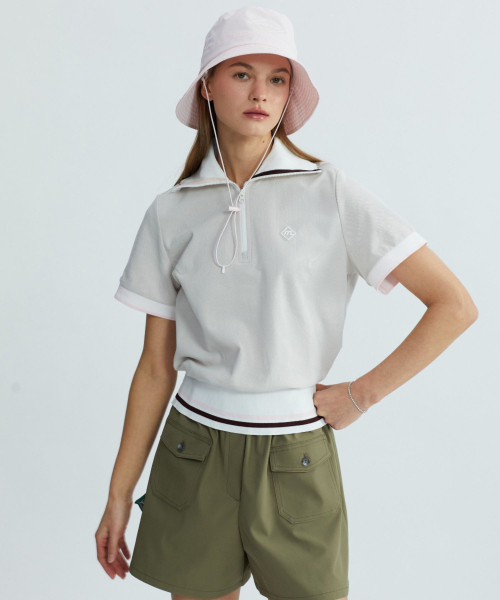 와이드카라 집업 탑_라이트 베이지