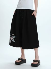 체크 스타 아플리케 버뮤다 팬츠[블랙]
