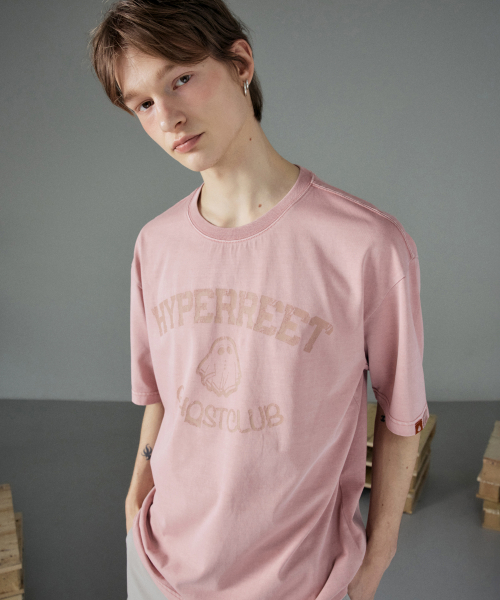 남녀공용 피그먼트 고스트클럽 반팔 티셔츠 [빈티지핑크]_HG2TS116