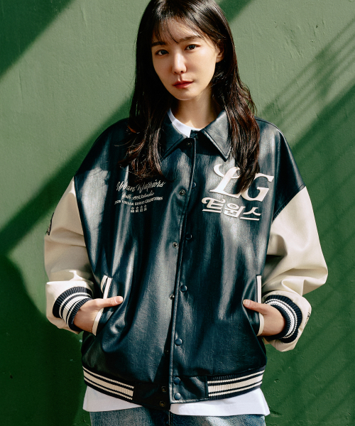 [LG트윈스x1993스튜디오] V4 트윈스 바시티 자켓_블랙