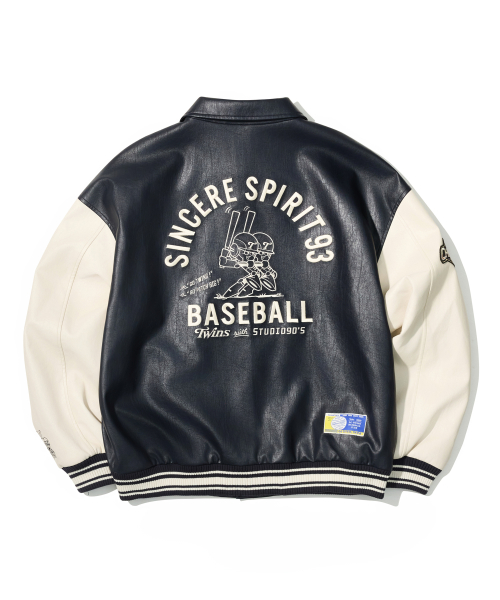 [LG트윈스x1993스튜디오] V4 트윈스 바시티 자켓_네이비