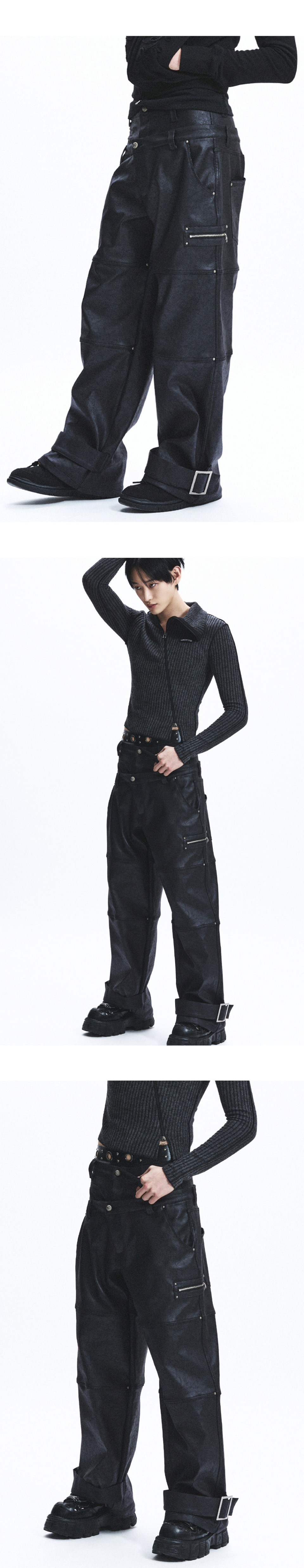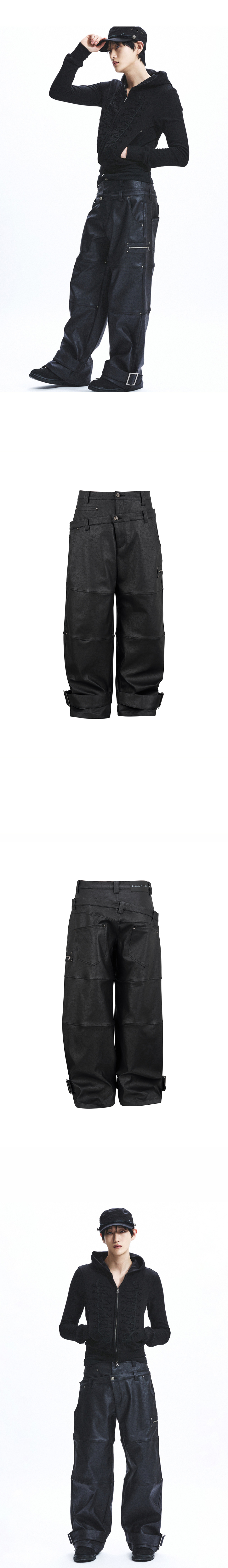 Double Waist Coated Pants_[Black]