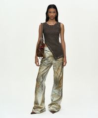 Warped Seam Flare Fit Denim Pants - Black