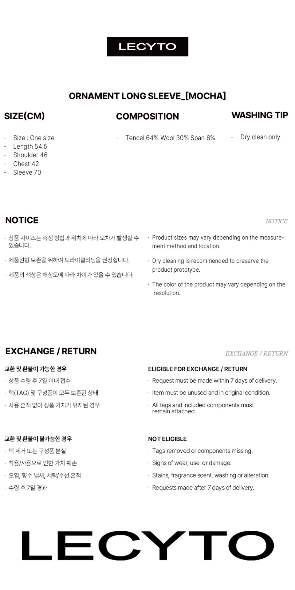 레씨토(LECYTO)는 장르나 콘셉트에 국한되지 않고 현재 삶을 바탕으로 한 합리적인 디자인을 지향하는 브랜드입니다. 익숙한 것과 불규칙한 것의 교차점에 존재하는 실루엣과 디테일을 선보입니다.