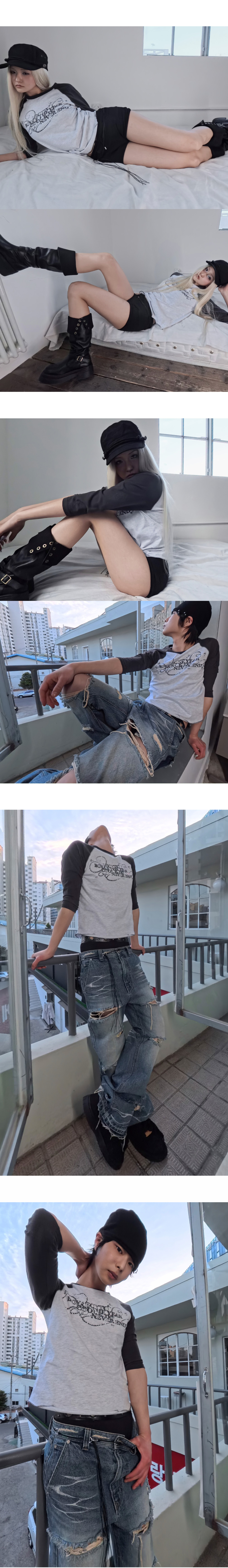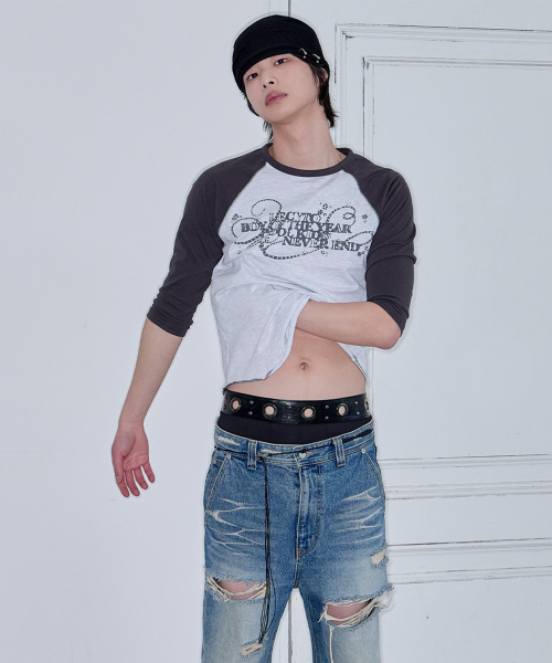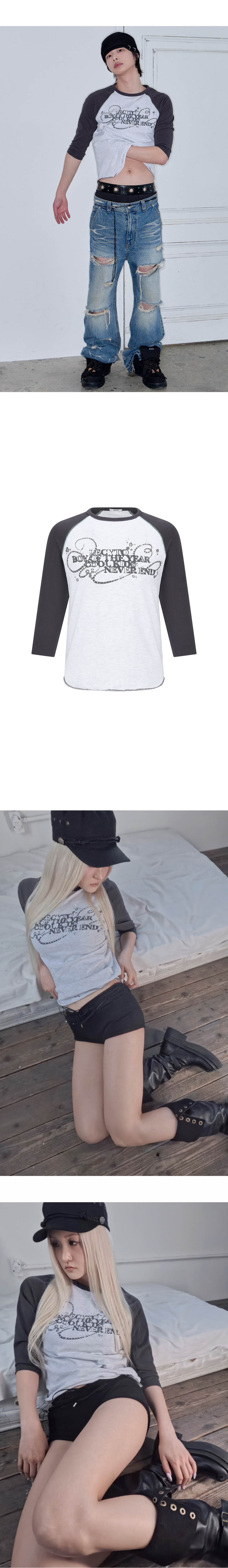 Sparkle Lettering Raglan T-Shirt_[Charcoal]