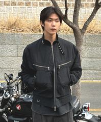 코튼 바이커 레이어드 자켓_블랙