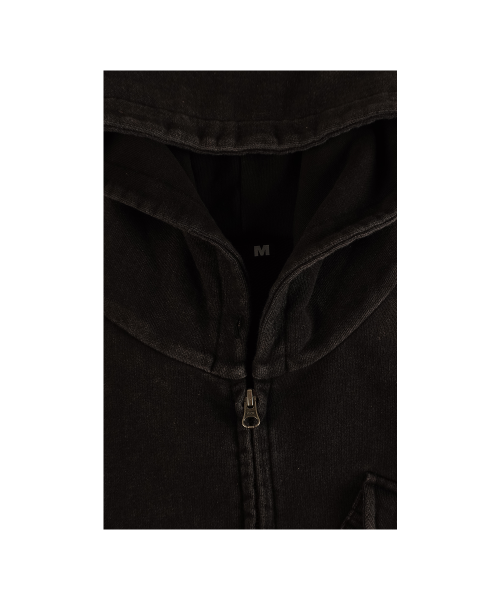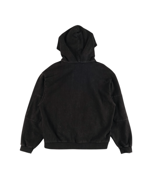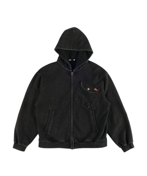 Flame Waffle Appliqué Hoodie Zip-Up Charcoal
