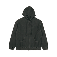 Flame Waffle Appliqué Hoodie Zip-Up Charcoal