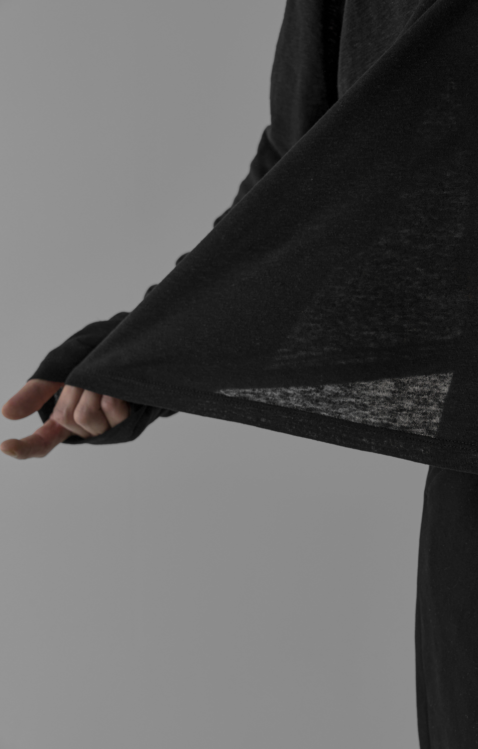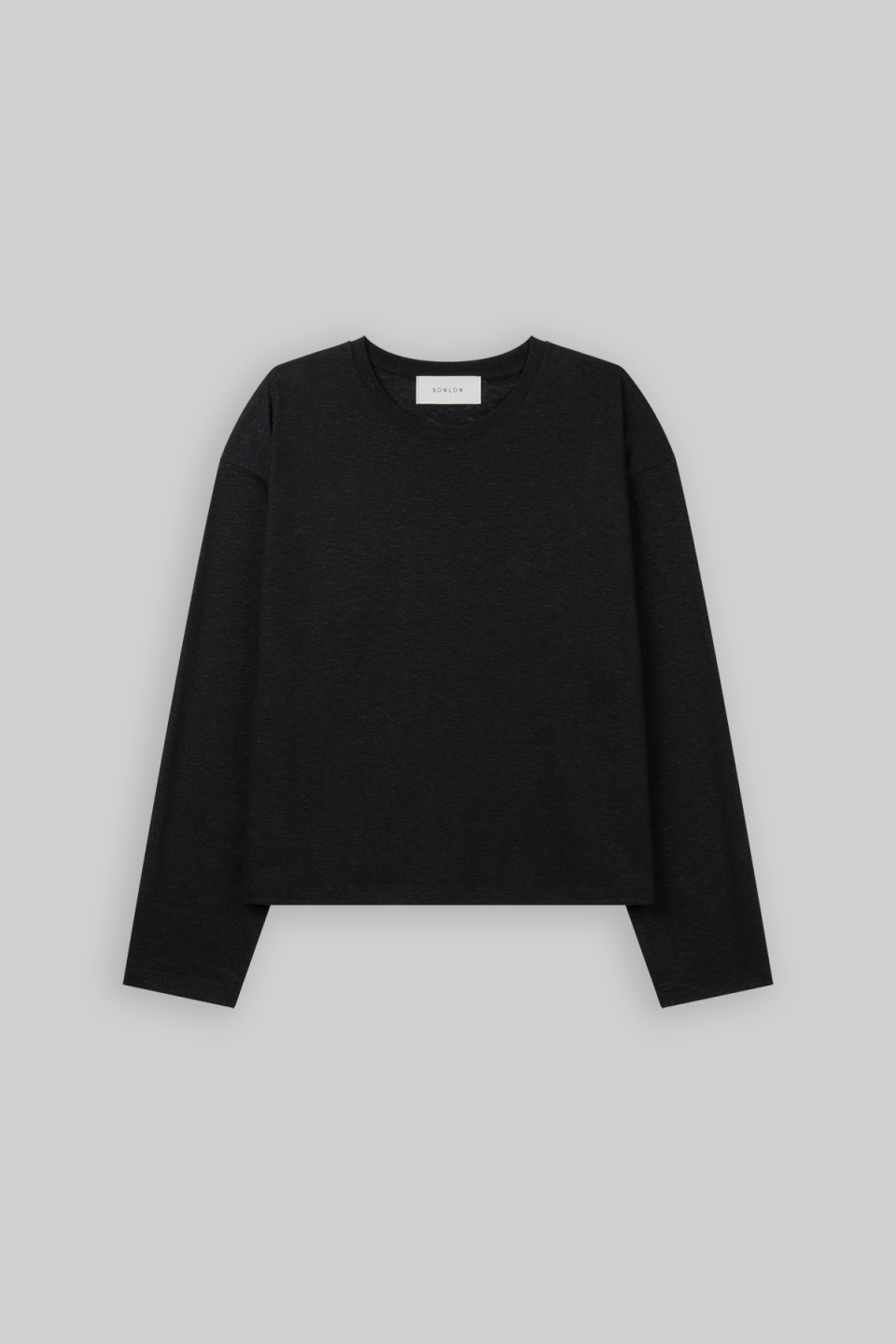 - 린넨 폴리 혼방 원단으로 제작된 긴팔 니트티