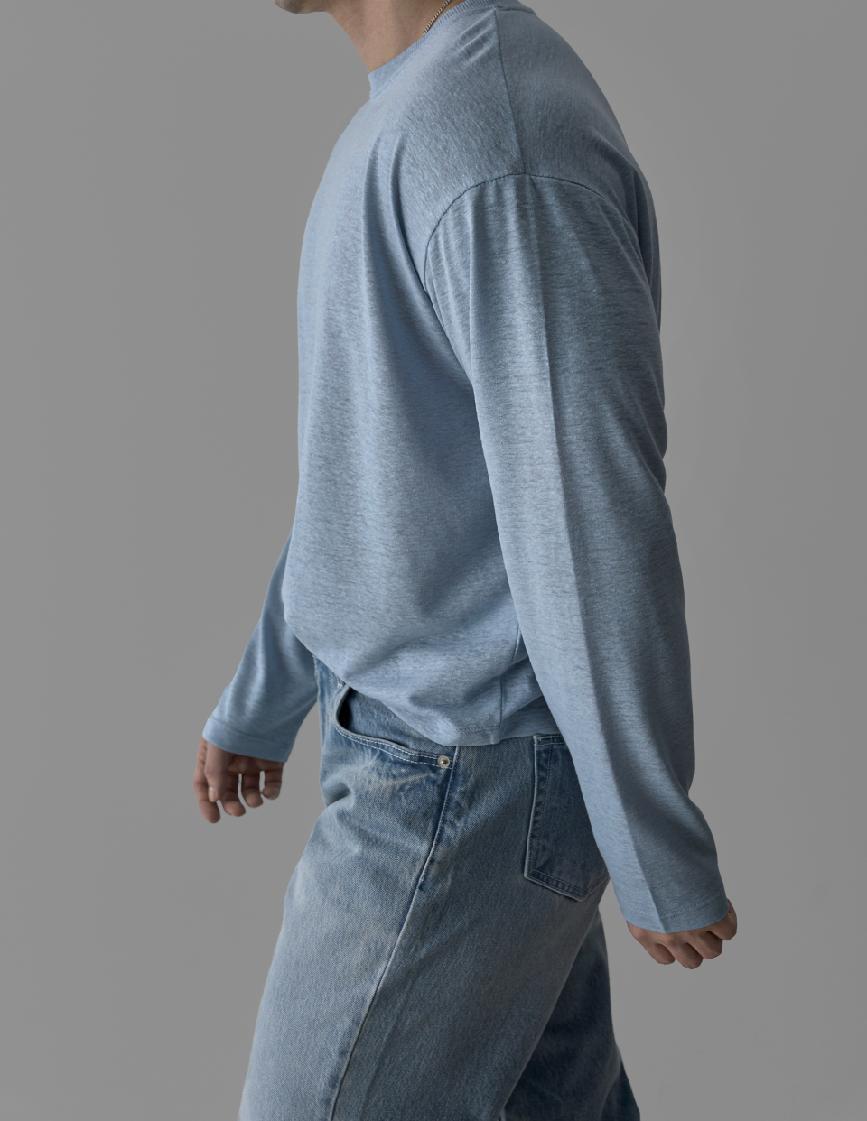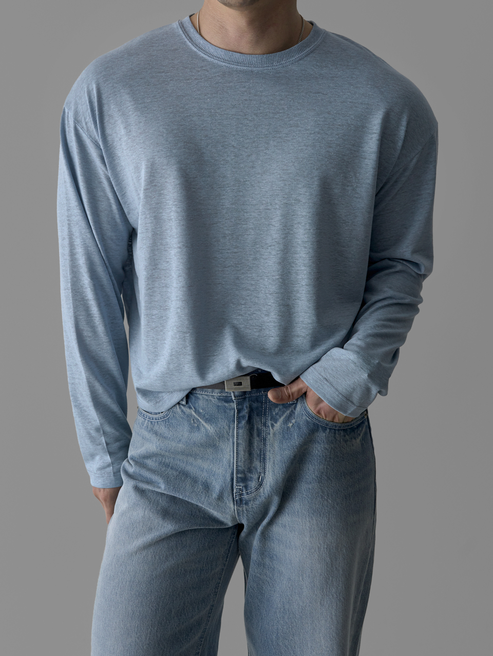 - 린넨 폴리 혼방 원단으로 제작된 긴팔 니트티