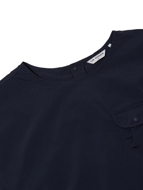 - 은은한 립 조직감의 우븐 소재가 적용된 반팔 티셔츠