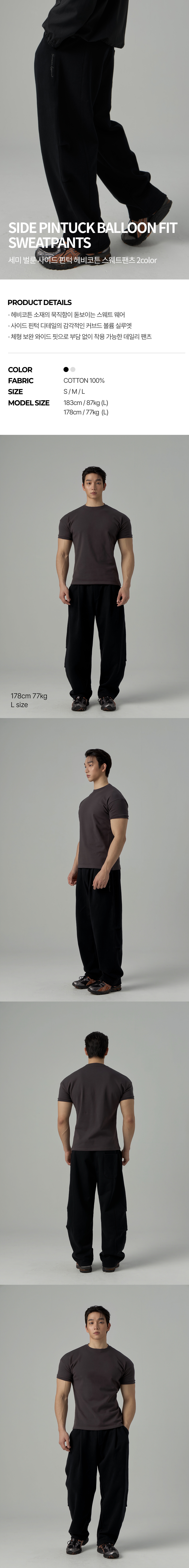 헤비코튼 세미 벌룬 사이드 핀턱 스웨트팬츠 2color