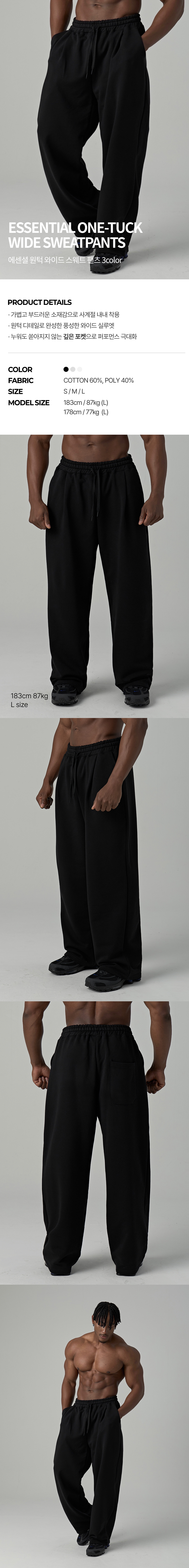 에센셜 원턱 와이드 스웨트 팬츠 3color