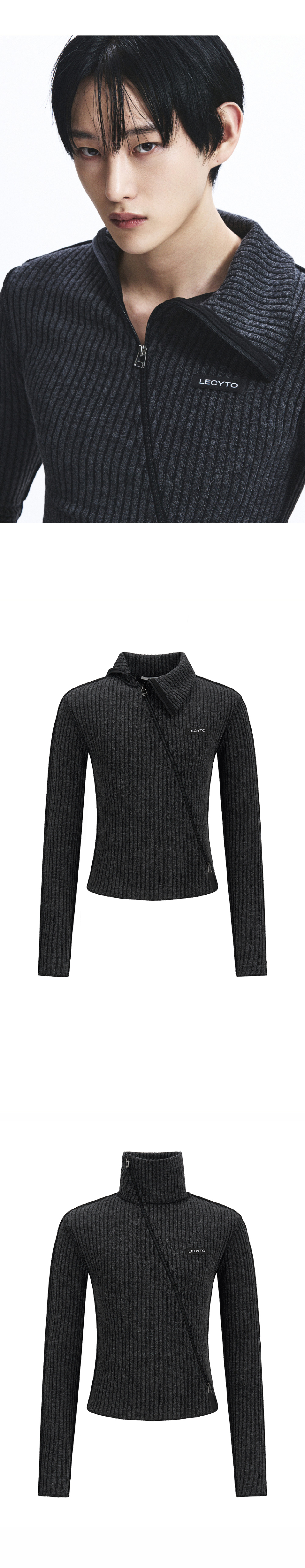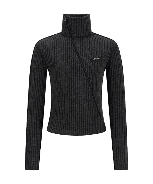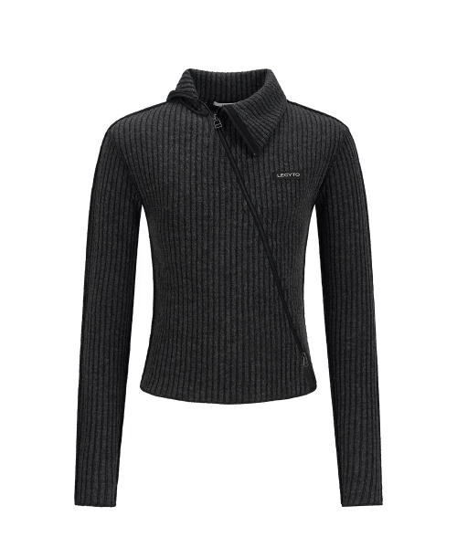 Diagonal Rib Knit Zip-Up_[Charcoal]