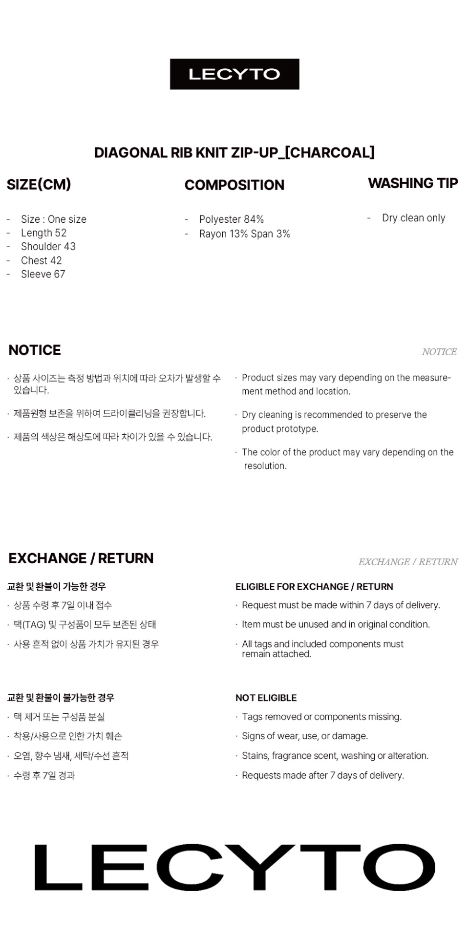 레씨토(LECYTO)는 장르나 콘셉트에 국한되지 않고 현재 삶을 바탕으로 한 합리적인 디자인을 지향하는 브랜드입니다. 익숙한 것과 불규칙한 것의 교차점에 존재하는 실루엣과 디테일을 선보입니다.