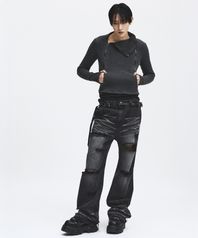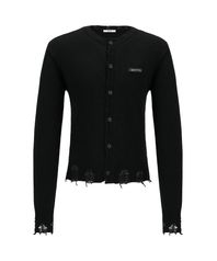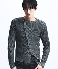 Destroyed Round Wool Knit Cardigan_[Black]