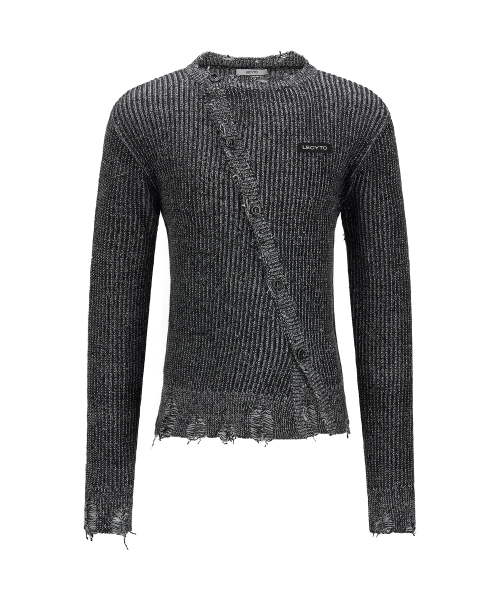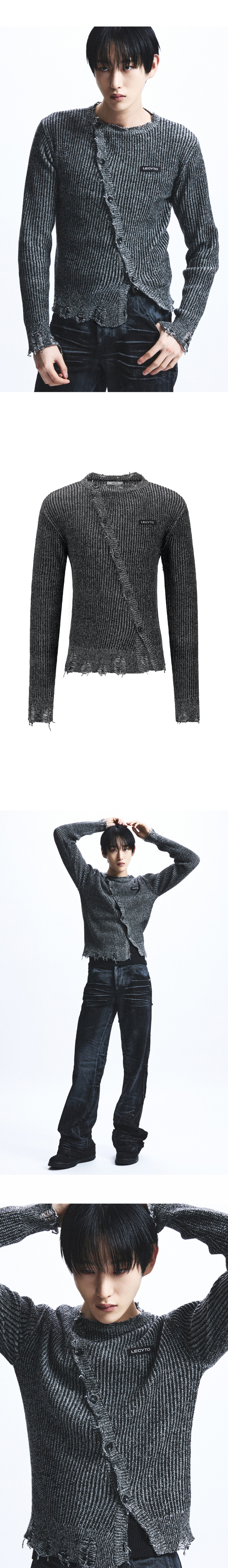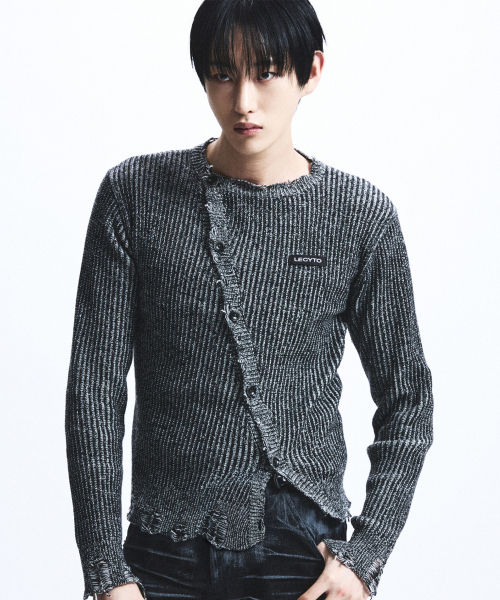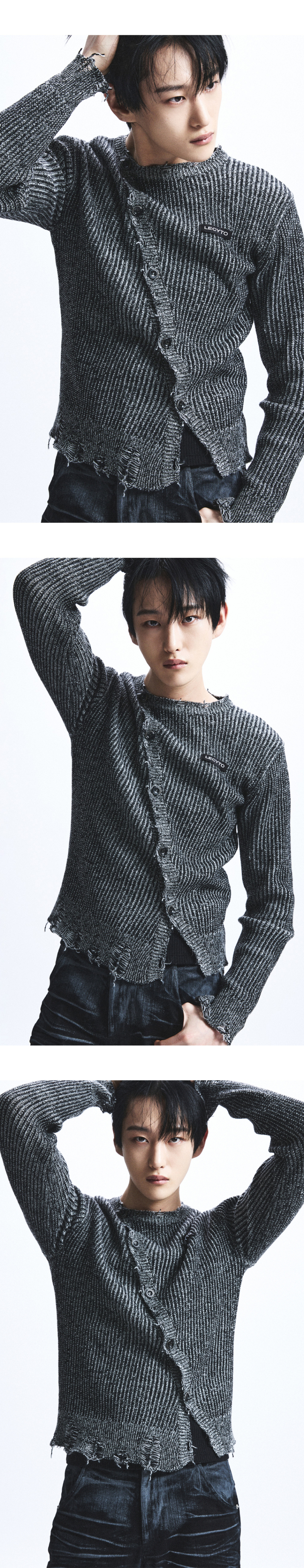 Diagonal Rib Knit Zip-Up_[Charcoal]