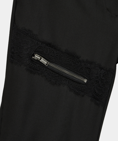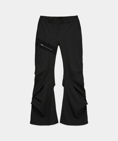 -사이드 더블 레이스업 디테일이 포인트가 되는 부츠컷 슬랙스
