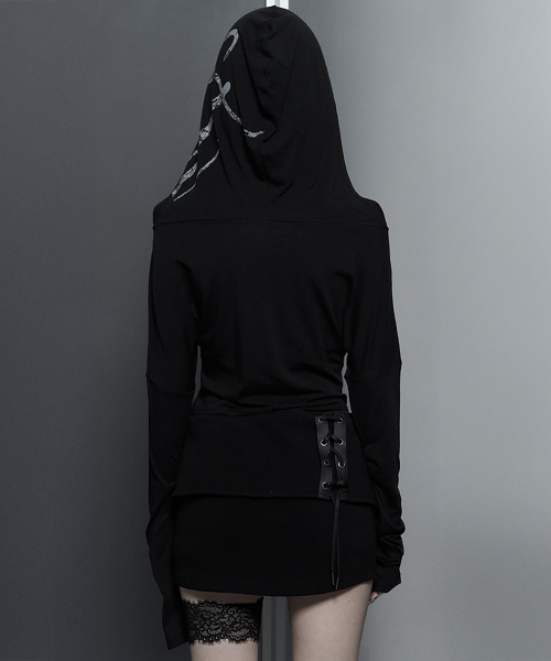 'Lettering Hooded Slim-Fit Long Sleeve Top