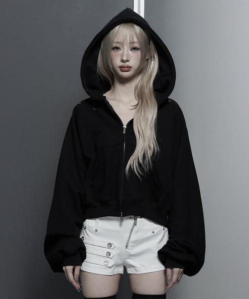 (핫픽스 디테일 크롭 투웨이 집업 후디)