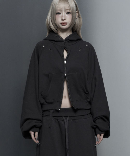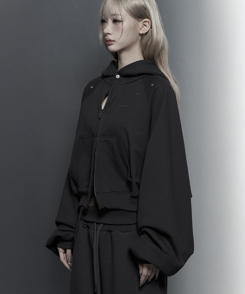 (핫픽스 디테일 크롭 투웨이 집업 후디)