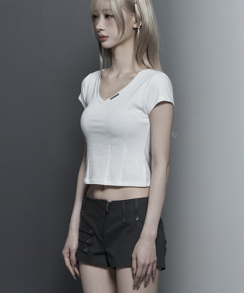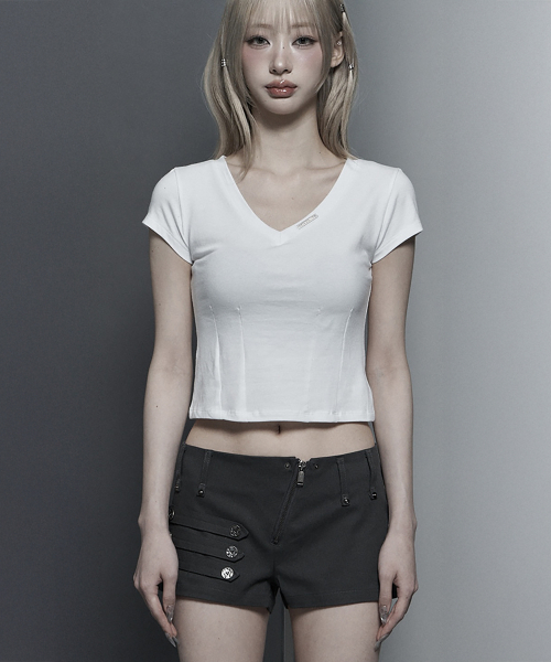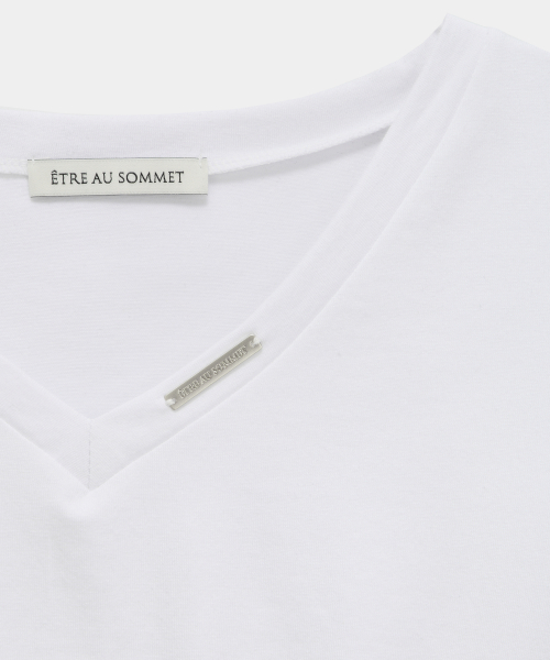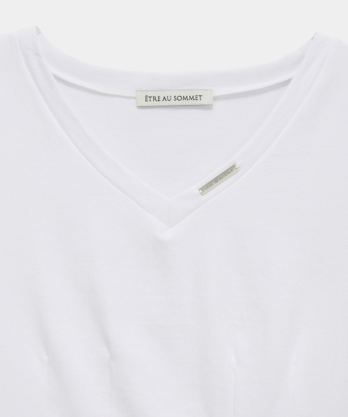 -미니멀한 브이넥 라인이 돋보이는 슬림 티셔츠