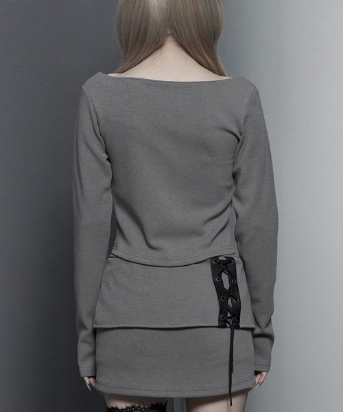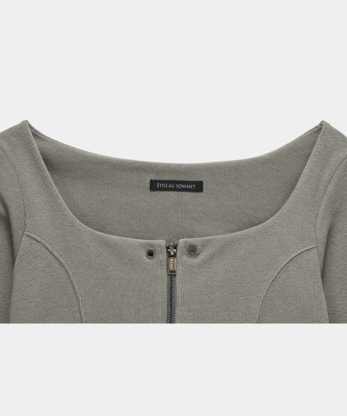 -스퀘어 넥 라인이 돋보이는 슬림 핏 롱 슬리브 탑