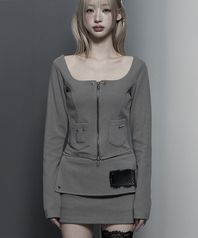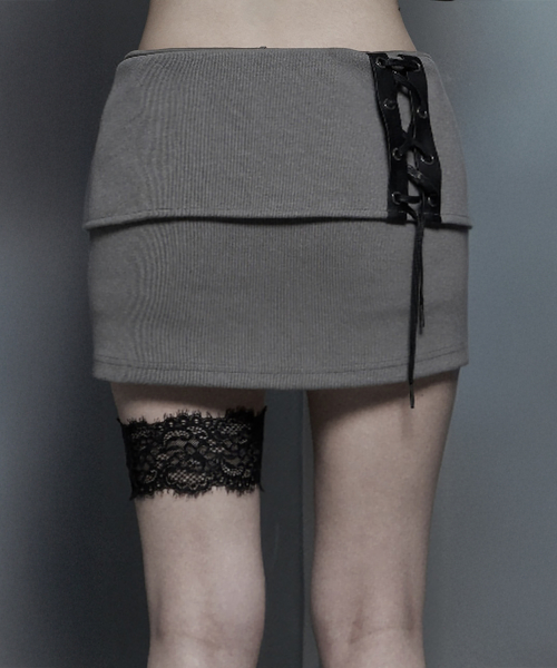 -사이드 레이스업 디테일이 포인트가 되는 레이어드 미니 스커트