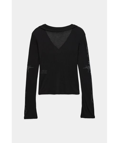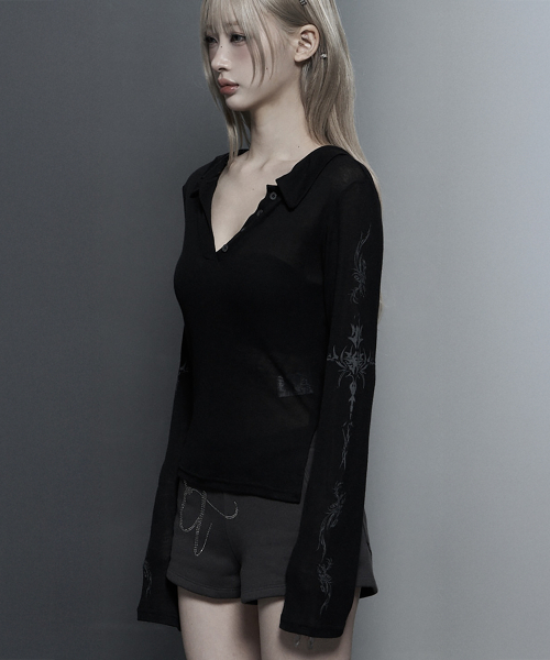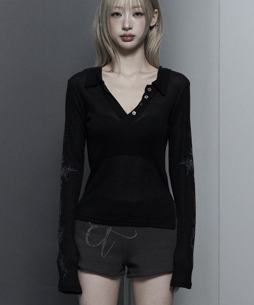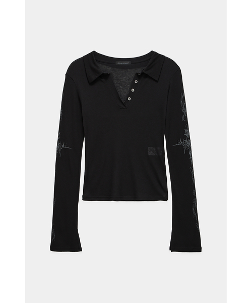 -양쪽 소매 레터링 디테일이 포인트가 되는 롱 슬리브