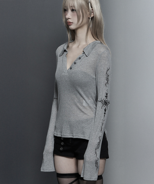 (립 카라 타투 롱슬리브 탑)