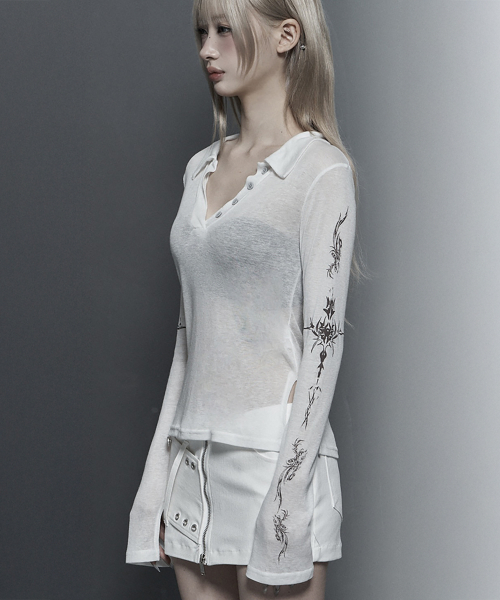 (립 카라 타투 롱슬리브 탑)