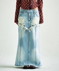 DESTROYED DOUBLE DENIM SKIRT LIGHT BLUE
