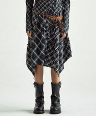 UNBALANCE LAYERED CHECK SKIRT (W) BLACK