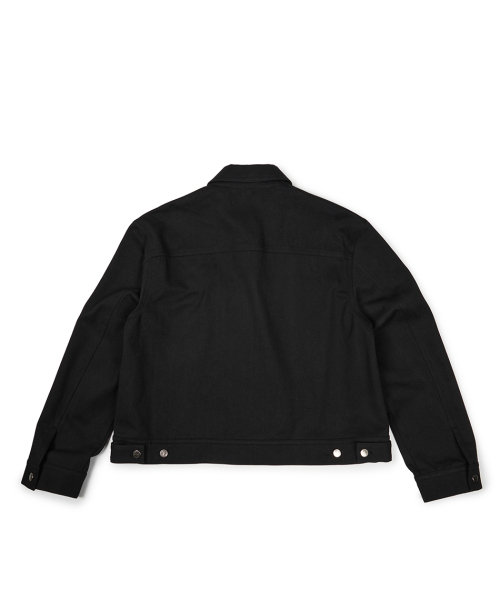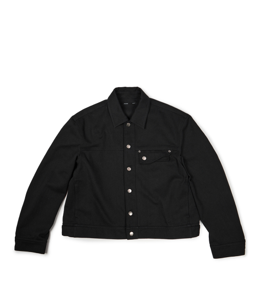 (BASE) CROP DOUBLE FLAP TRUCKER (BLACK)