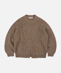TWEED WOOL ZIP UP CARDIGAN _ BROWN